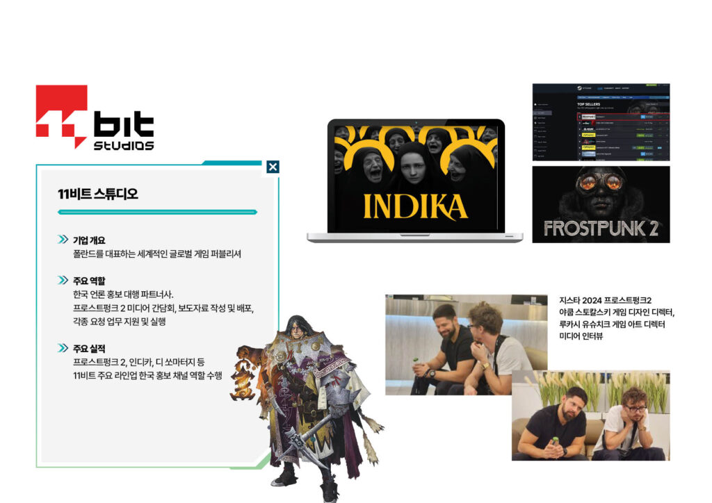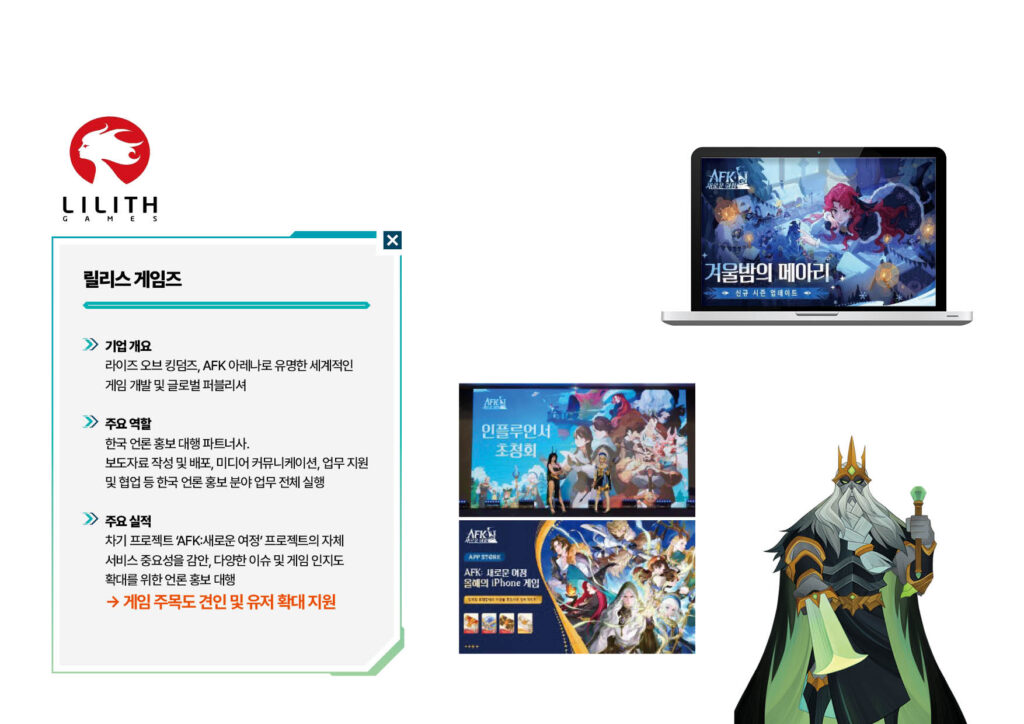 국내외 유수의 게임 및 IT 기업들과 함께 협업하며, 수많은 프로젝트에서 효과적인 언론 홍보를 성공적으로 수행해 왔습니다.
