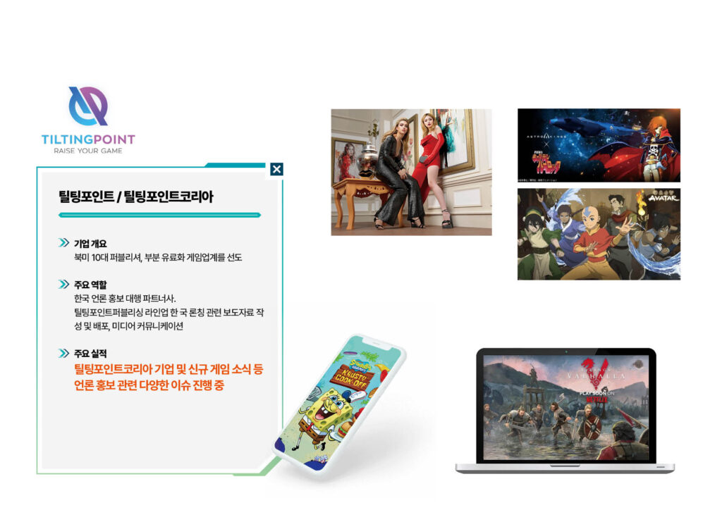 게임, IT 분야 주요 기업들과 함께하며 미디어 커버리지와 브랜드 인지도를 극대화했습니다.